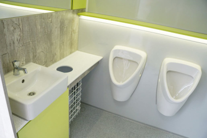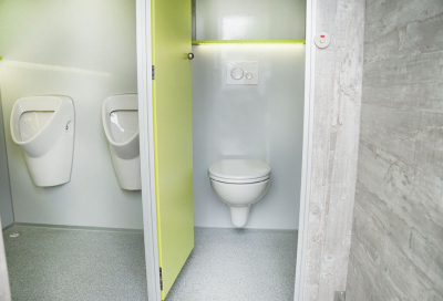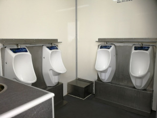 Die Urinale sind bewegungsmeldergesteuert oder wasserlos.